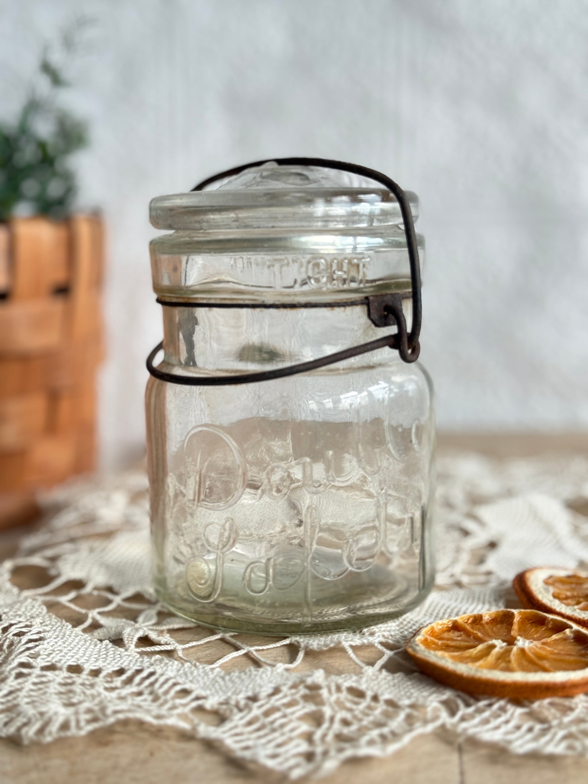 Antique “Double Safety” glass canning jar