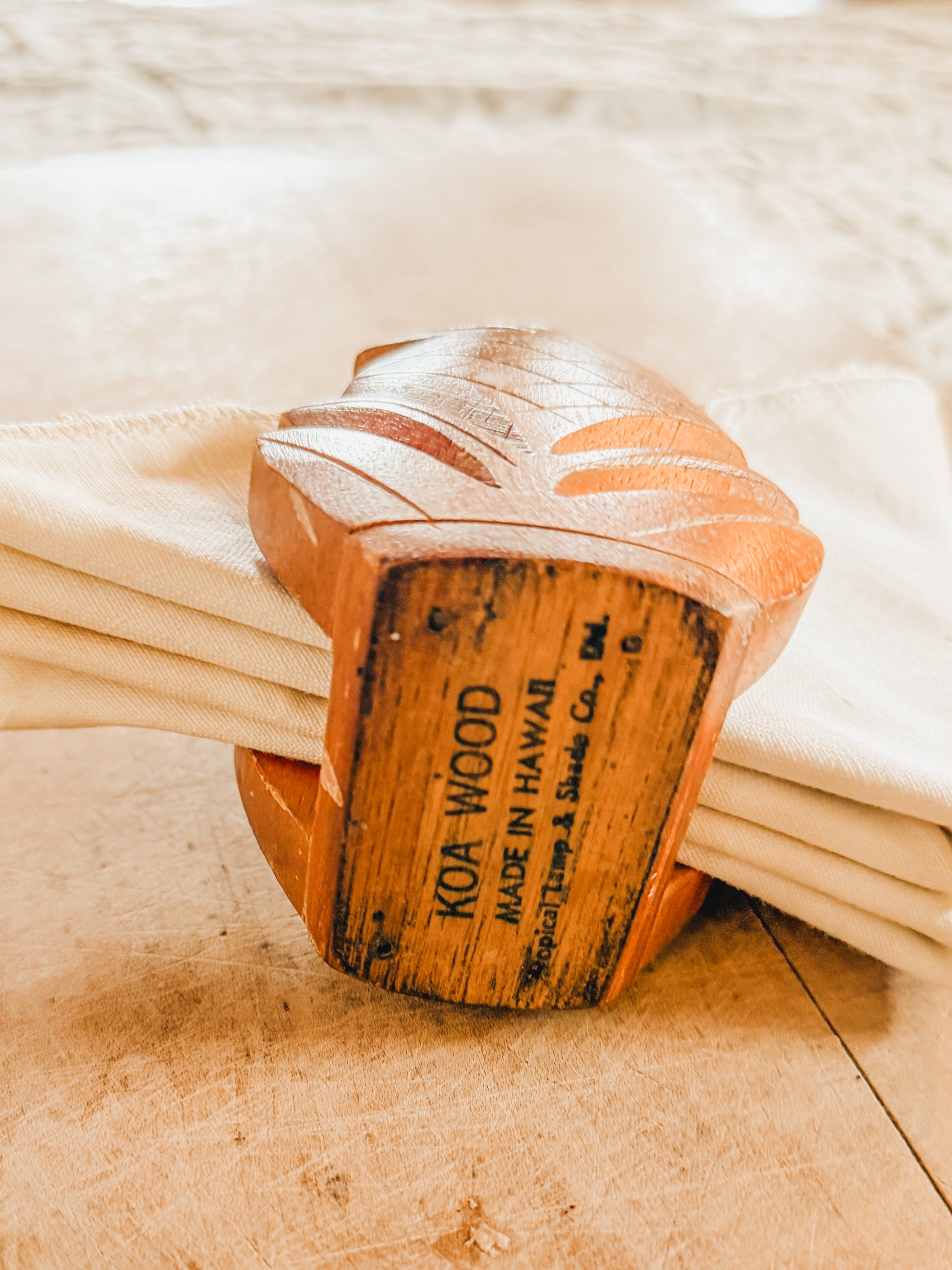 Souvenir hand carved Koa wood pineapple napkin or letter holder. Perfect for summer entertaining or kitchen decor.