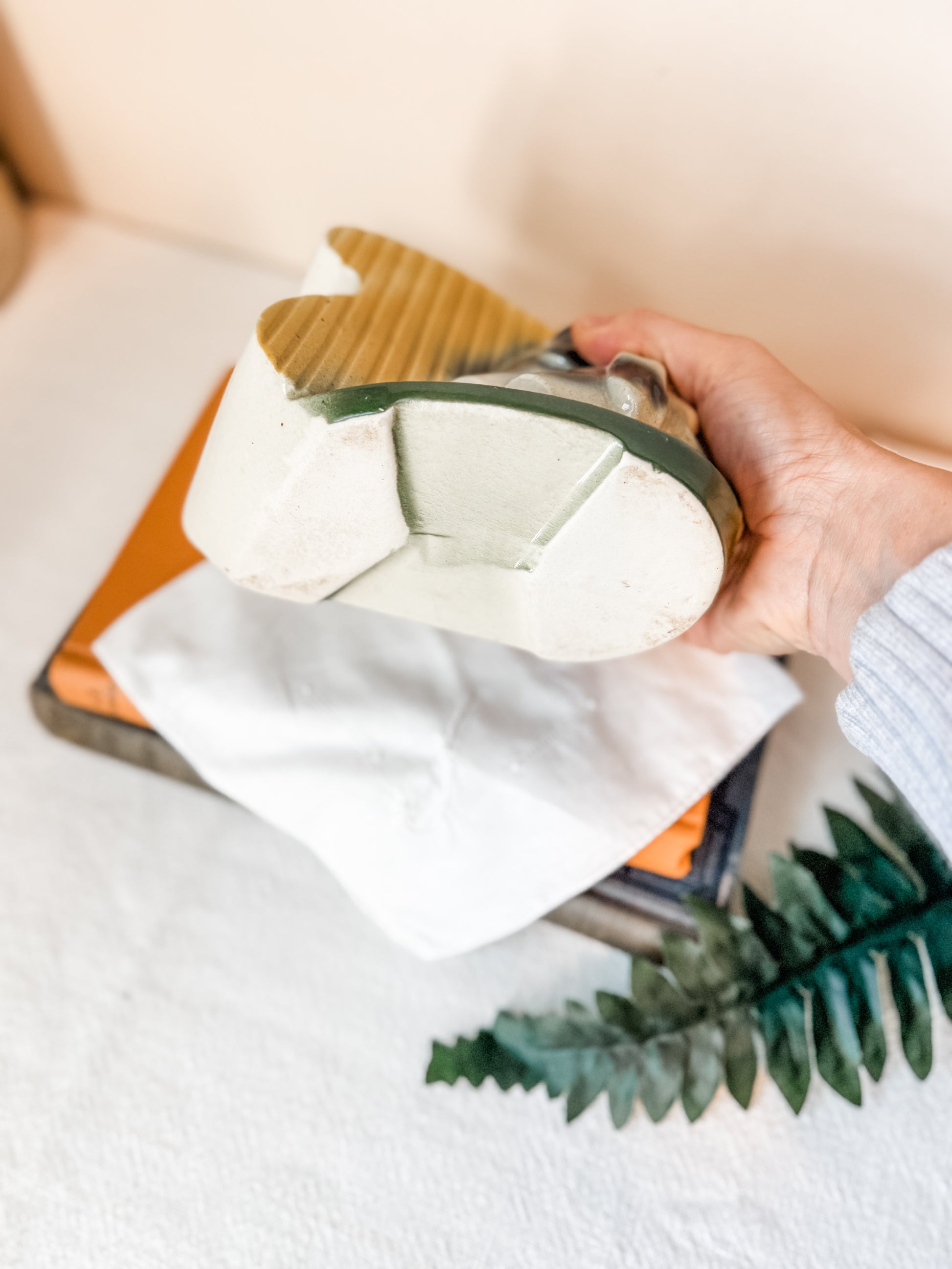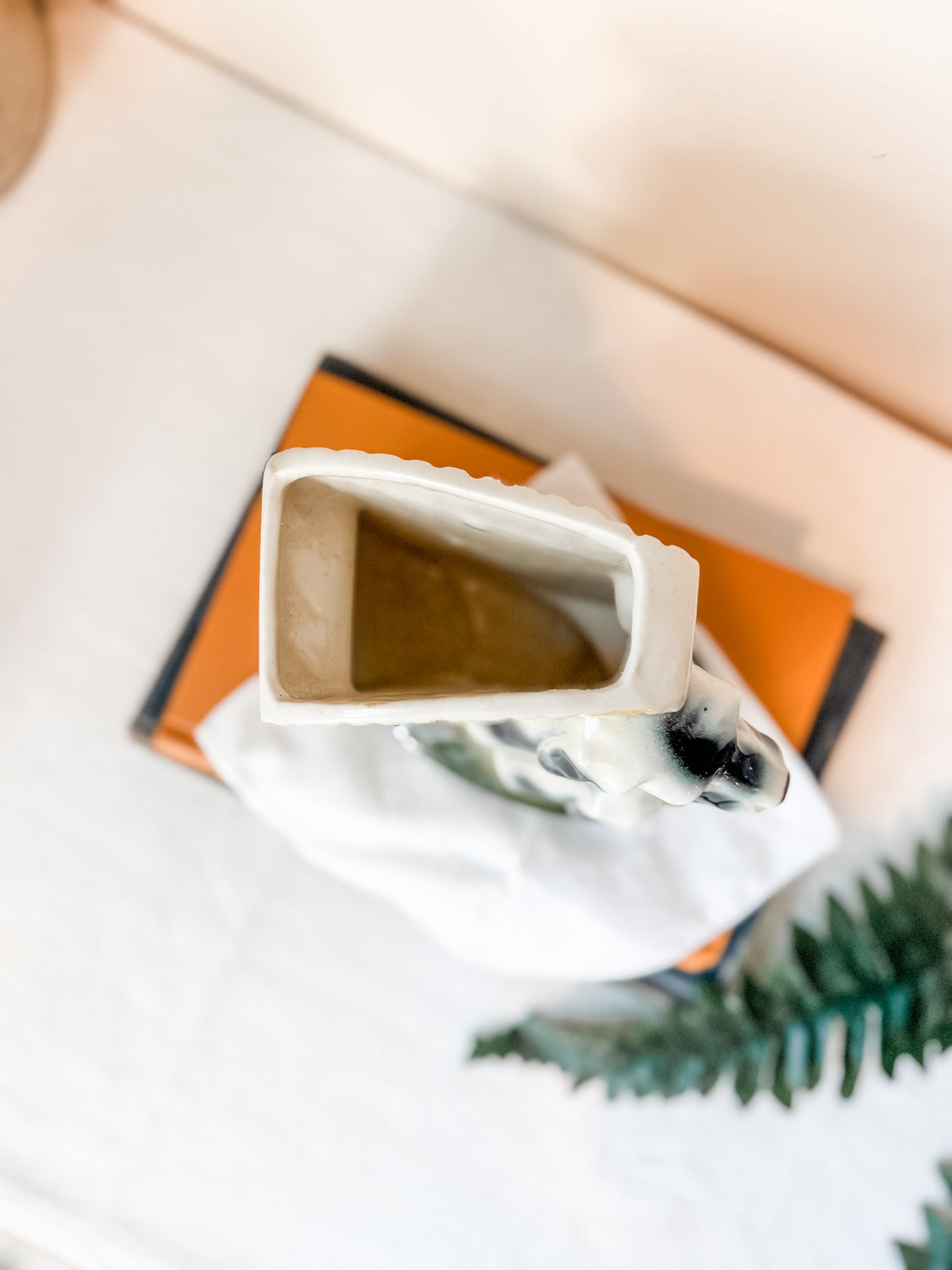 How fun and sweet is this mid century planter featuring two dogs? The main colors are green and mustard yellow. It would be perfectly styled with some dried grasses on a bookshelf or desk.