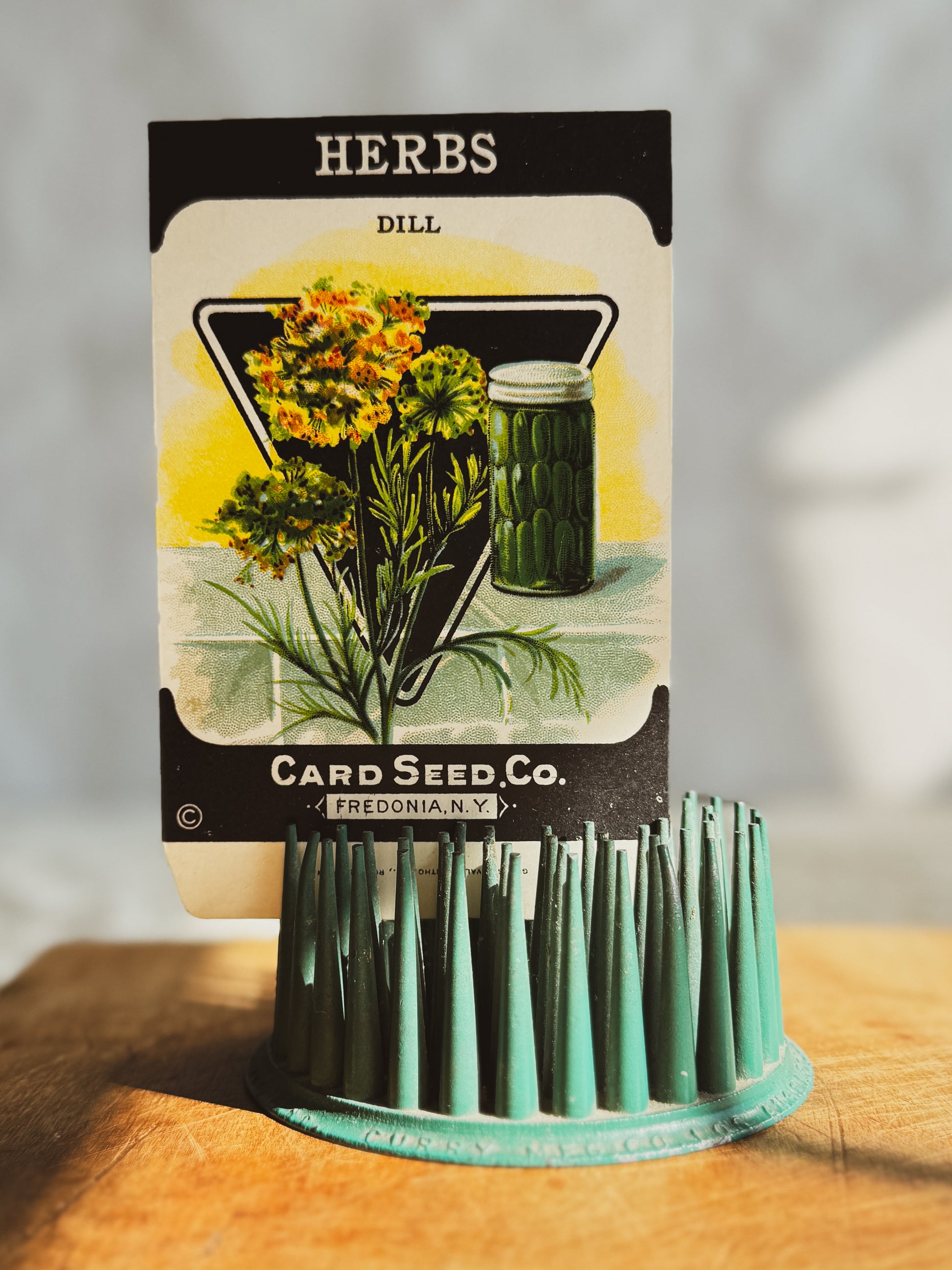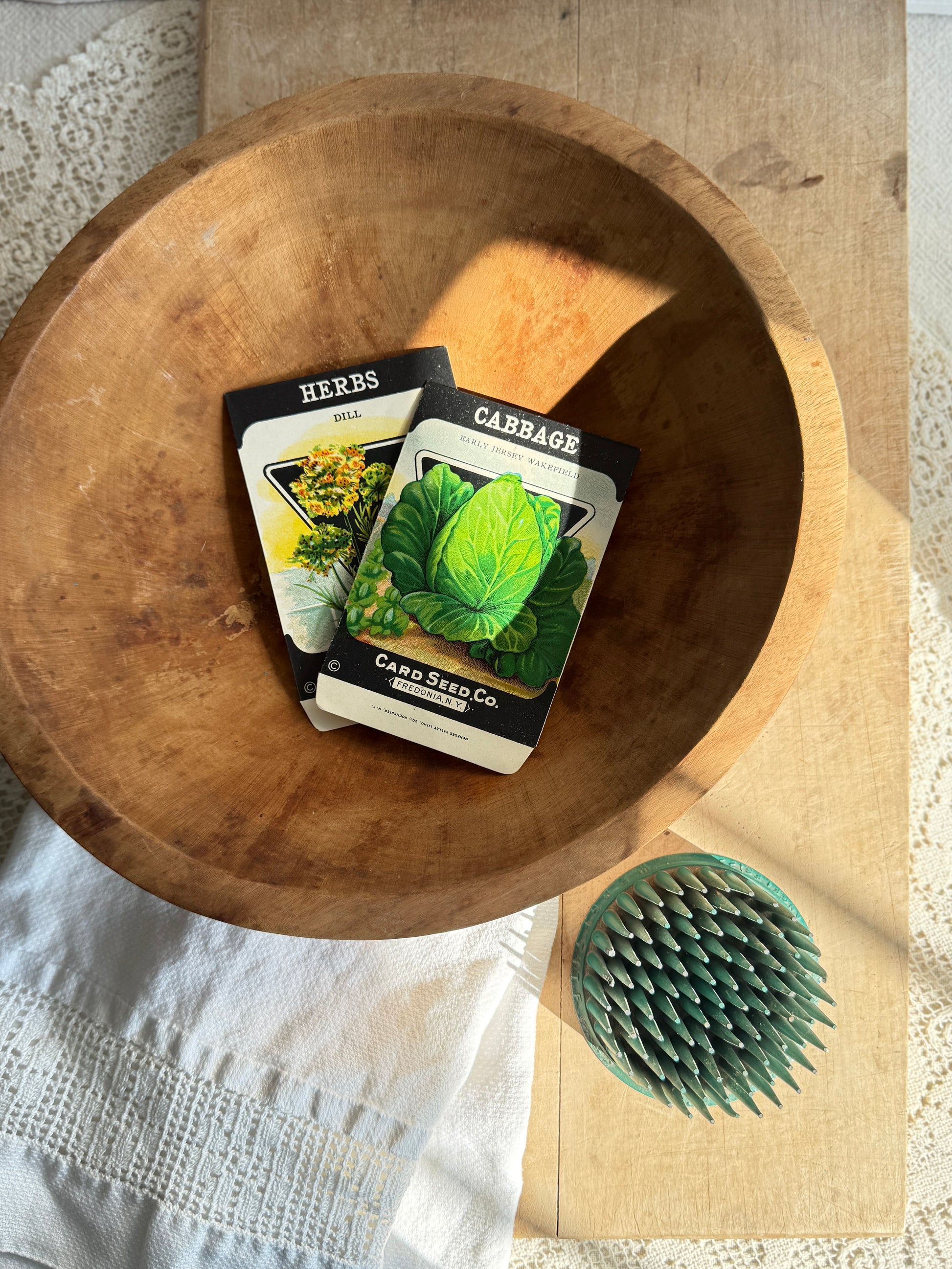 Two seed packets without seeds. These packets are lithography printed and dated from the 1920’s. One is cabbage and the other is dill.