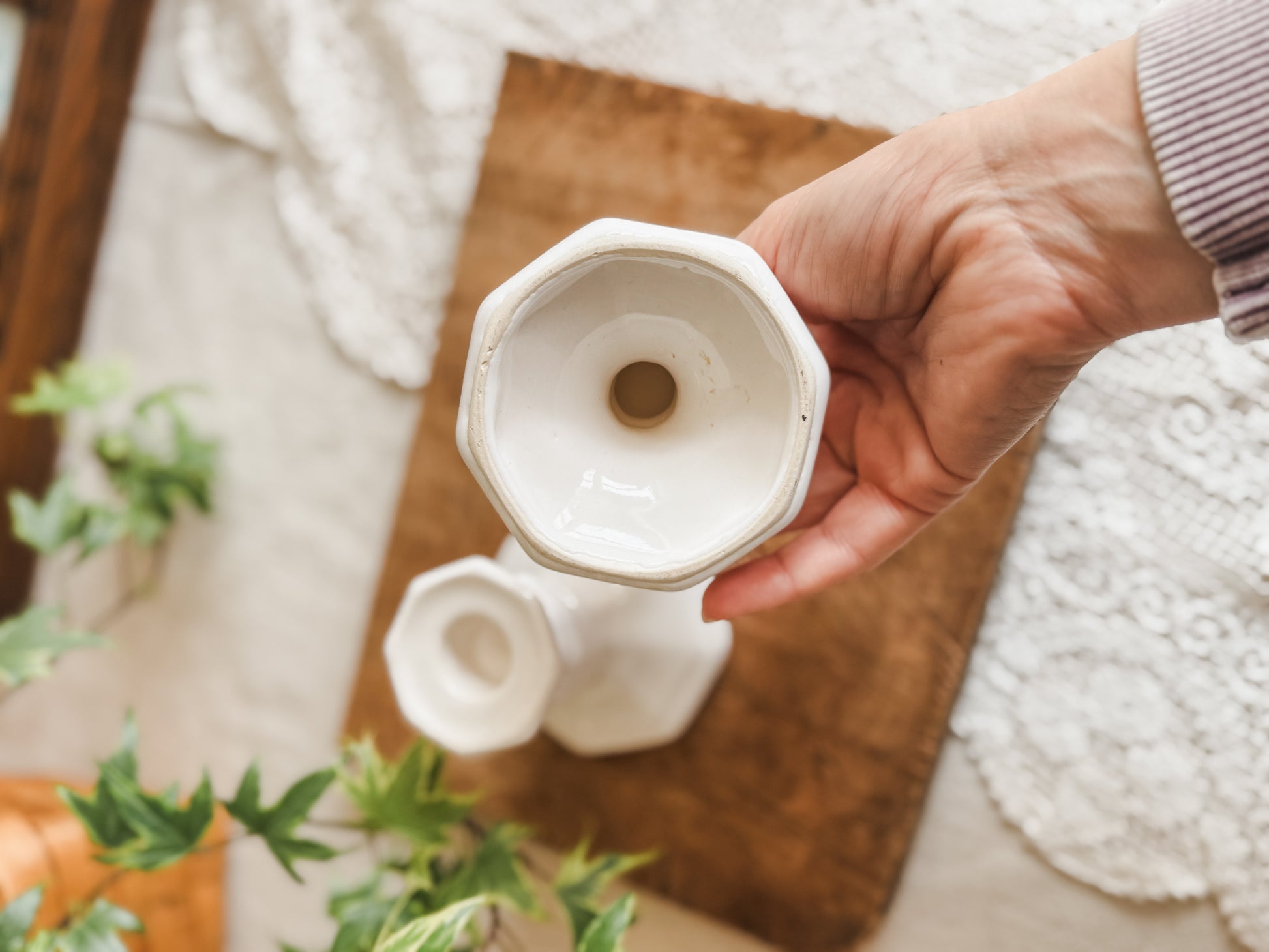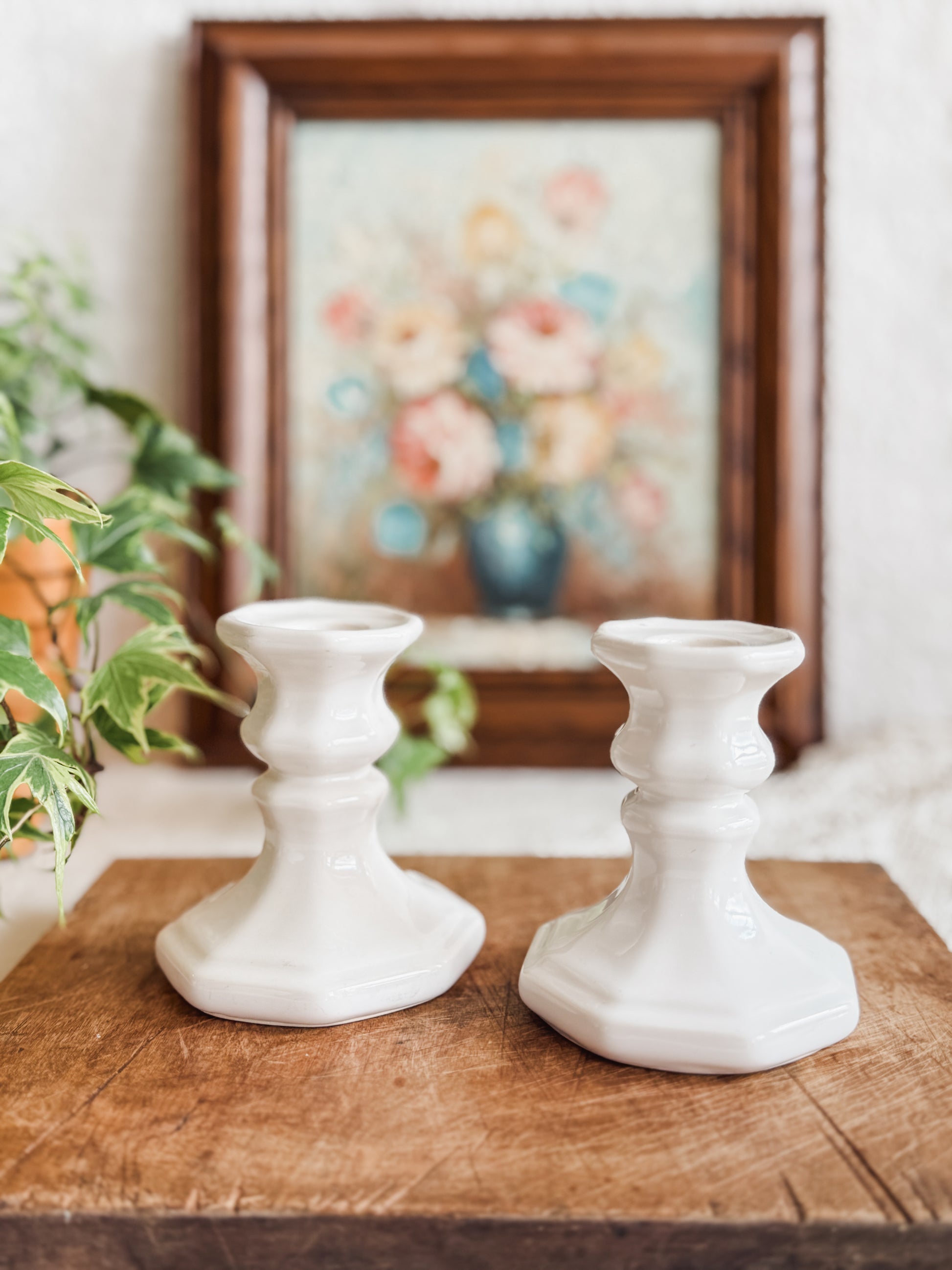 Two Pfaltzgraff Heritage White Candle Sticks