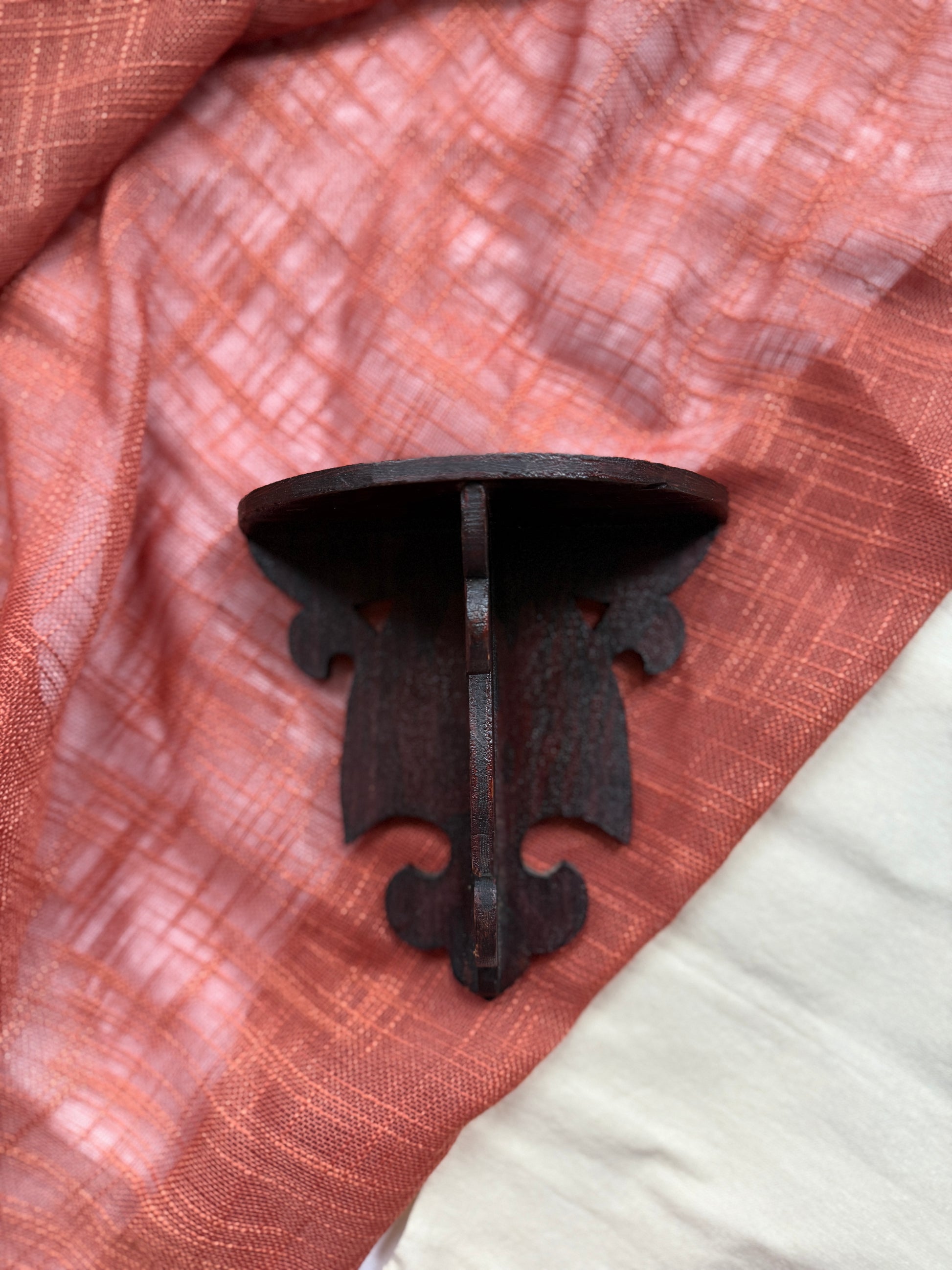Small dark wood hand carved wood shelf. Most likely antique because it is consistent with hand made shelves of the late 1800’s and early 1900’s.