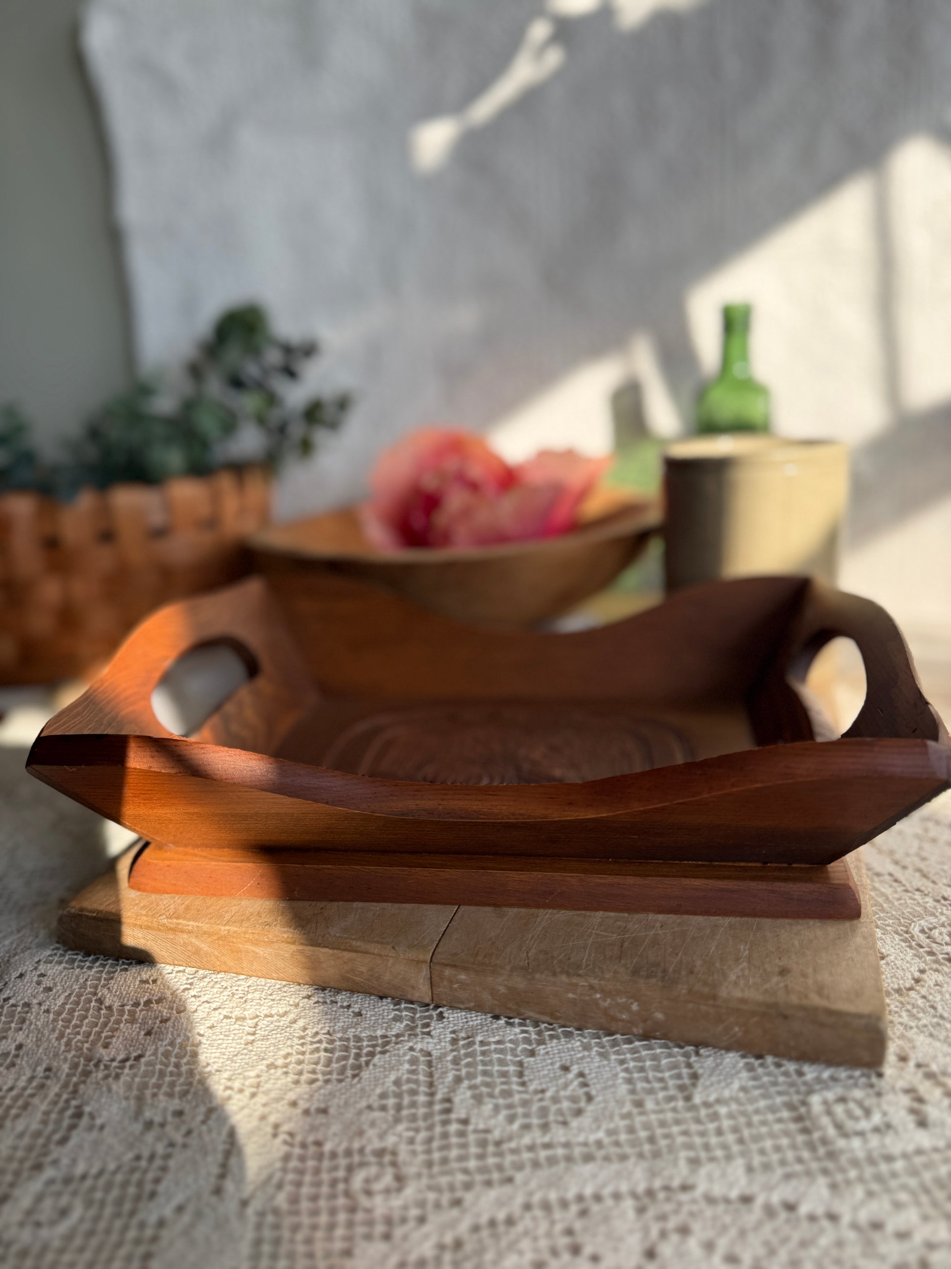 This dark toned wooden bread try is perfect for adding some cottage charm to your table or counter.